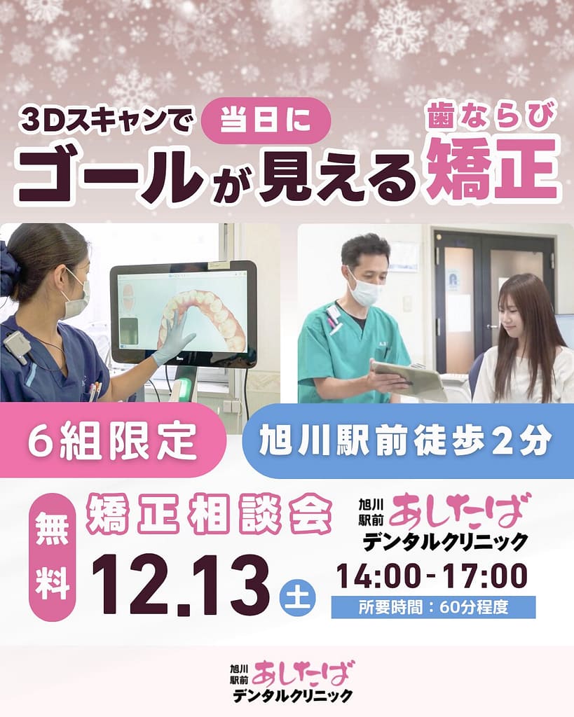 3Dスキャナーで、矯正後のシミュレーションを見ながらお話をさせて頂きます ご興味のある方・お話を聞いてみたいな!という方、お申込みお待ちしております
